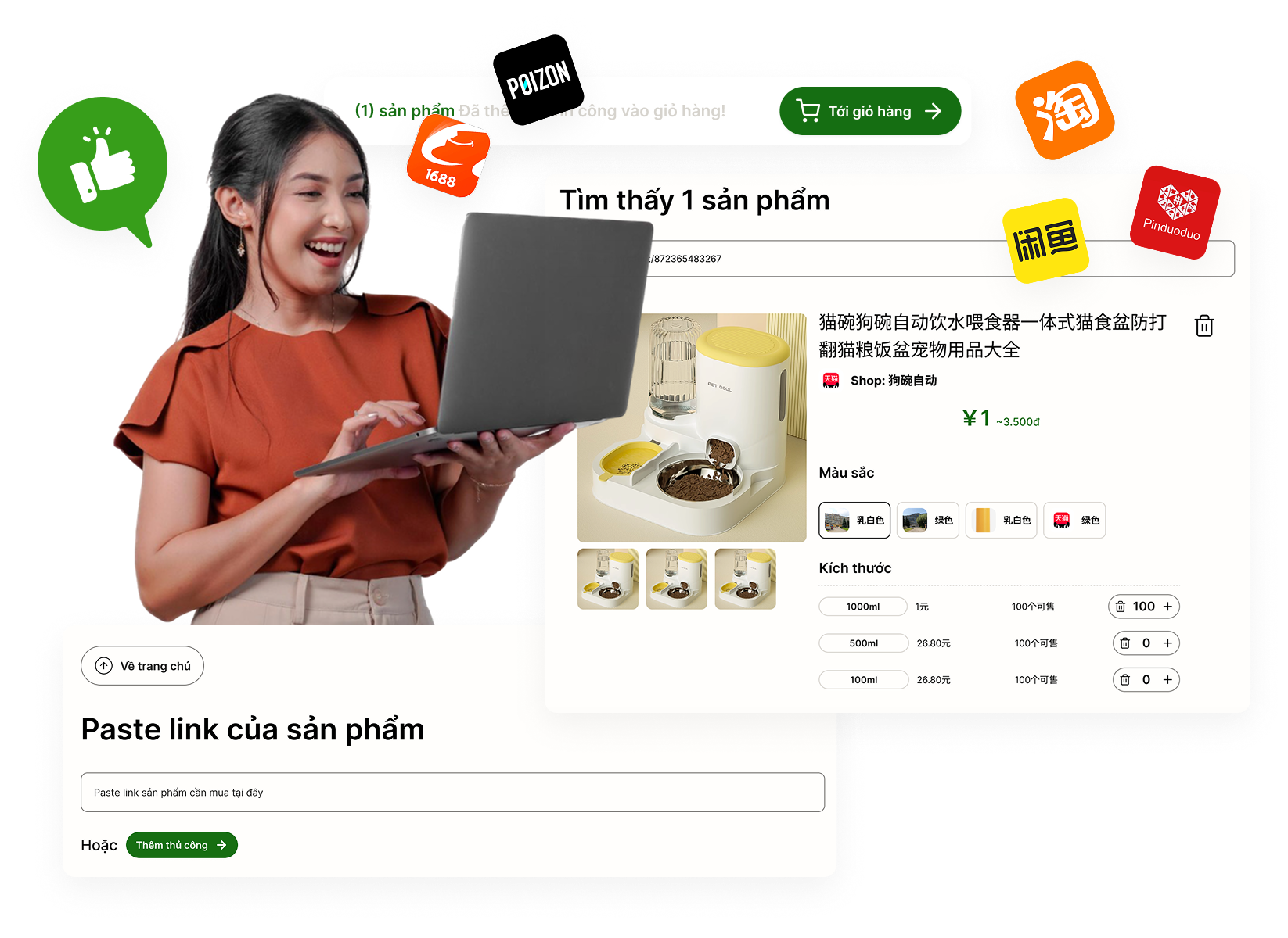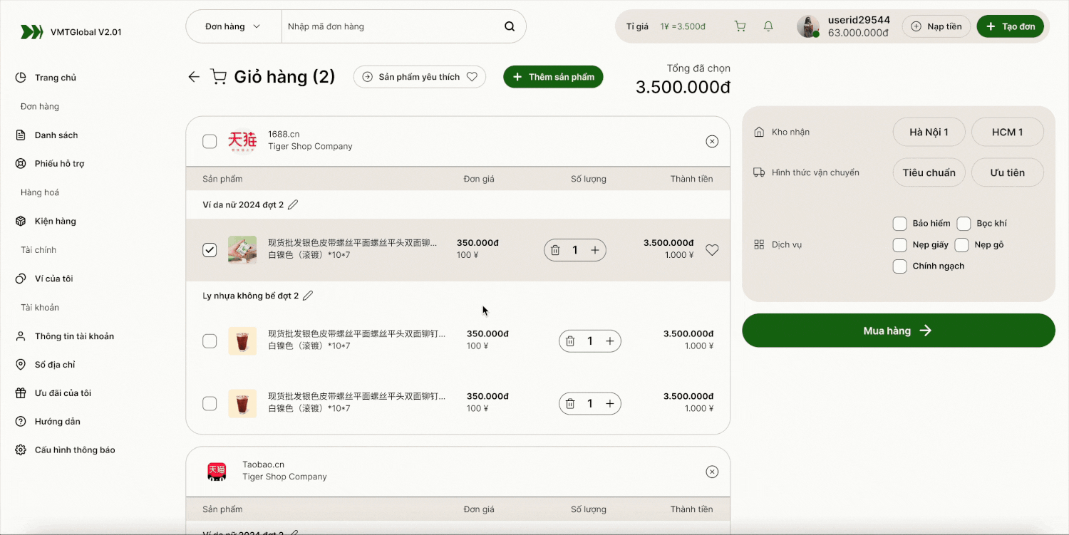 Giá mua hộ, vận chuyển minh bạch, không làm tròn cân, tối ưu ngân sách nhập hàng.